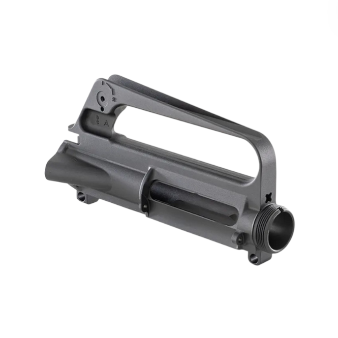 Features specific to the M16A1 Upper Receiver are the original A1 profile, with no shell deflector, A1 rear sight housing and proper carry handle contours. The upper starts off as a 7075 T6 aluminum forging, then is machined to mil-spec dimensions. Once machined, the upper is finished with a matte black hard anodized finish. The black finish matches most modern lowers found on the market today. Standard AR-15components will work perfectly with this upper.