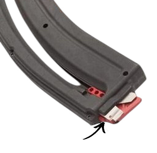 You will be able to tell by looking closely at the feed lips and comparing it to your magazine and mag well. This magazine has an extra notch that is made to work on the Catch22 device. View the 2nd picture and you will see an arrow that points to the notch.