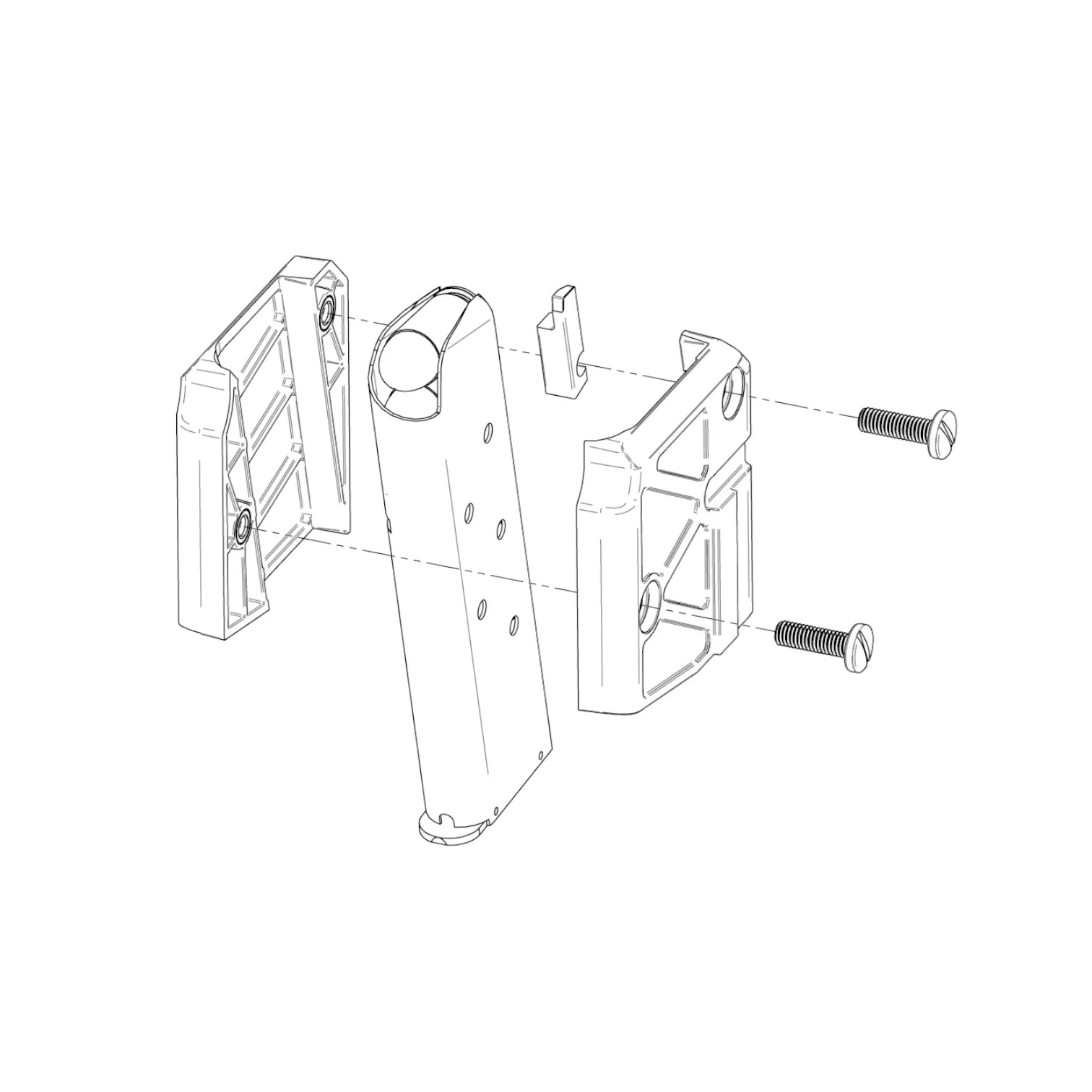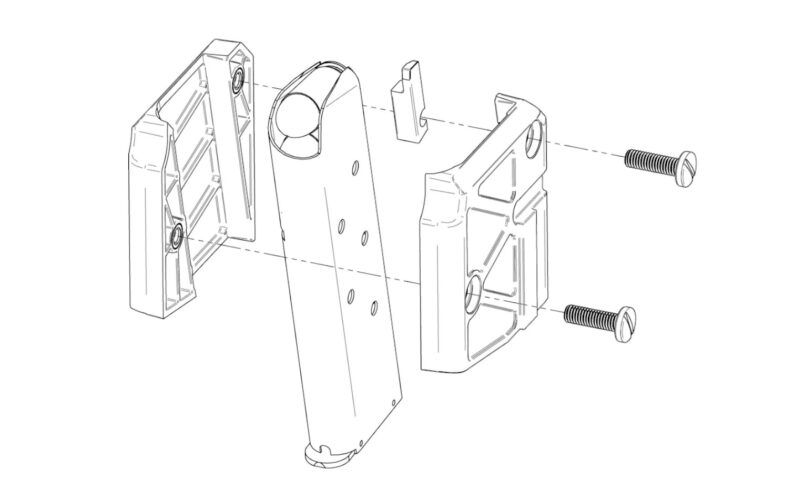 Each Model 19-15 G2 Magazine Adapter consists of an injection-molded Nylon 66 clamshell, two screws, and a precision CNC-machined fixed stainless ejector.