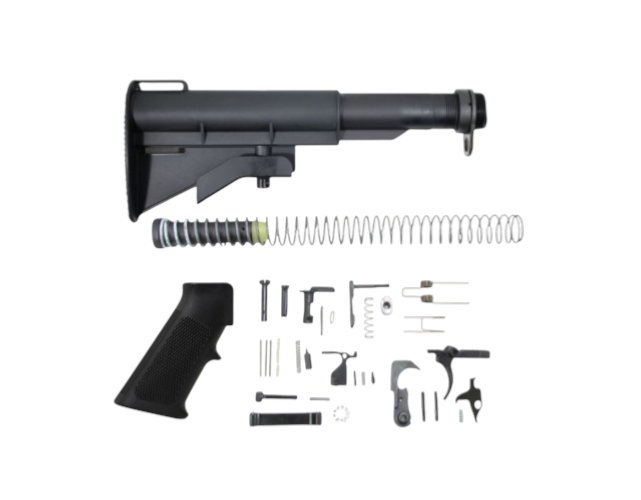 Includes DPMS Retro CAR-15 Stock, A2 pistol grip, and trigger guard, DPMS Retro Lower Parts Kit and Mil-Spec diameter 6-position buffer tube assembly.