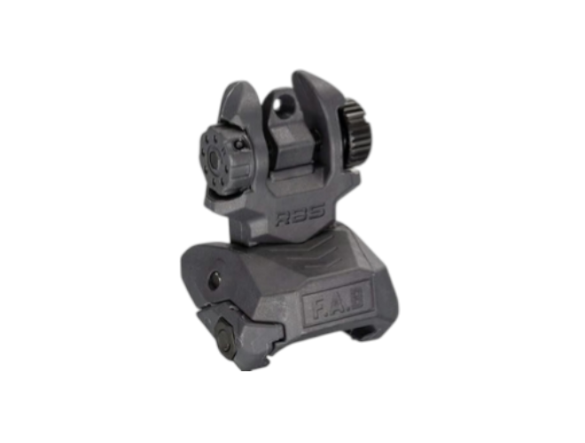 The Fab Defense RBS is an advanced, dual aperture, durable and low-profile rear backup sight. It can be used with any front sight and was designed for more accurate aiming and faster target acquisition. Windage is easily and quickly adjusted without tools. The RBS is readily mounted on any 1913 Picatinny rail, making it ideal for use on AR-15 platforms and on the FAB Defense KPOS. An ergonomic angel-wing shaped shroud helps center the image with any front sight, and when used with a matching FAB Defense FBS front backup sight, it creates a precise optical tunnel that ensures more accurate aiming and faster target acquisition.