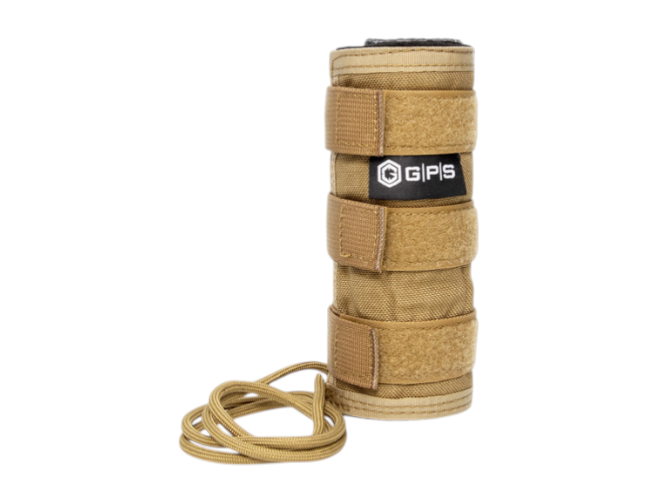 The GPS Tactical Suppressor Cover for 6-inch suppressors is designed to reduce visual mirage caused by heat radiating from a rifle’s suppressor. Constructed from 1000D nylon with a heat-resistant inner fiberglass and silicon lining, it provides thermal protection without adding bulk. An integrated tether line helps keep the cover in place under recoil and movement. Finished in tan for low-visibility field use, this cover fits the 6-inch configuration.