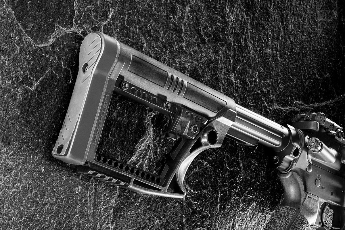 - Lightweight buttstock for the carbine AR, weighing in at 9.5 ounces