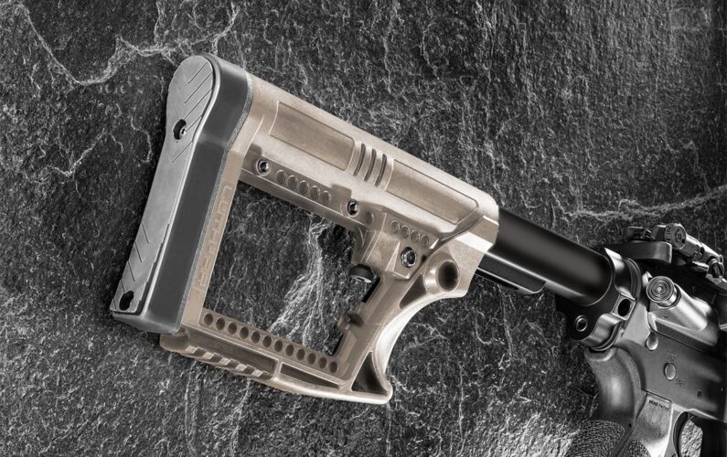 - Lightweight buttstock for the carbine AR, weighing in at 9.5 ounces