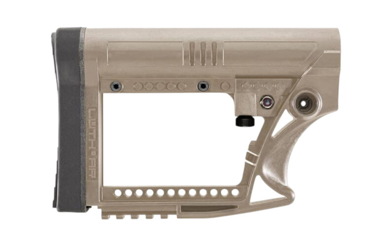 The Luth-AR Modular Buttstock Assembly (MBA) for AR style carbines is designed to replace the standard buttstock on your AR. The MBA-4 is designed to work with a 6-position Mil-Spec or Commercial buffer tube. The MBA-4 is a direct replacement a standard adjustable carbine buttstock without additional Length-of-Pull or Cheek rise in a low-cost, lightweight, strong and high-quality design.