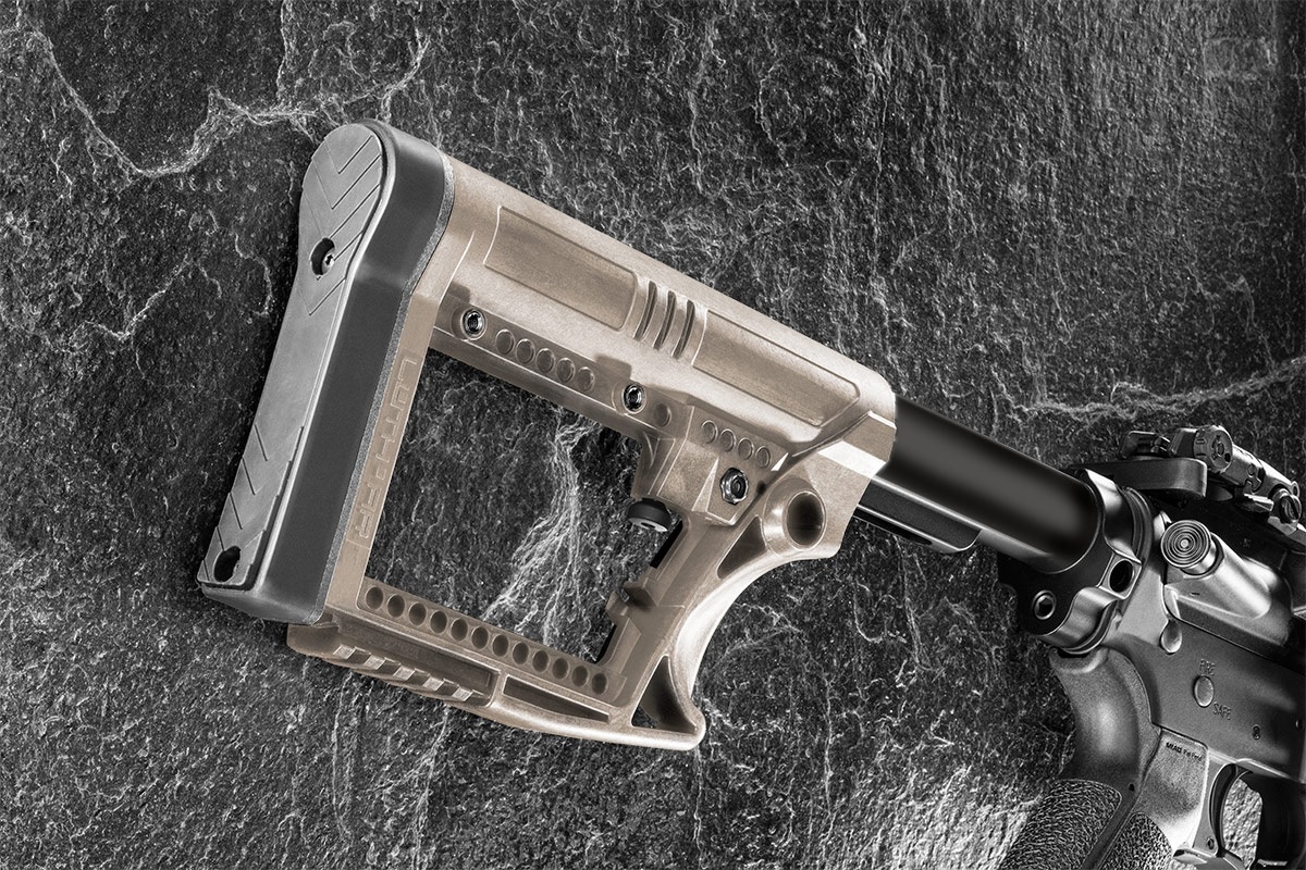 - Lightweight buttstock for the carbine AR, weighing in at 9.5 ounces