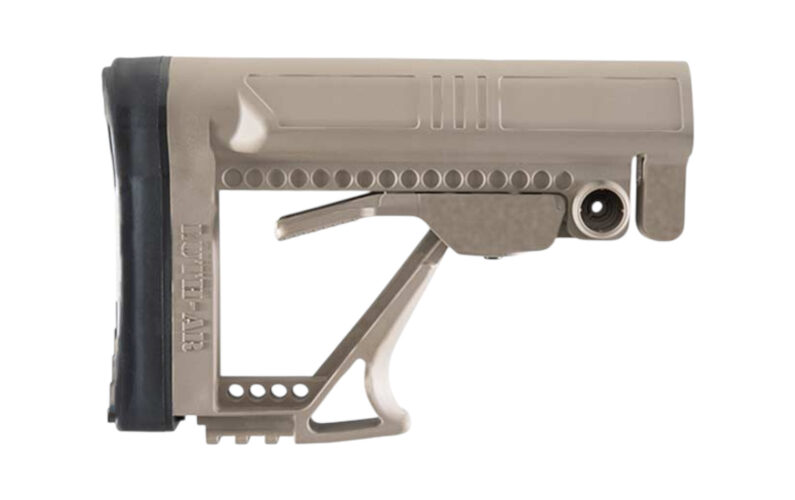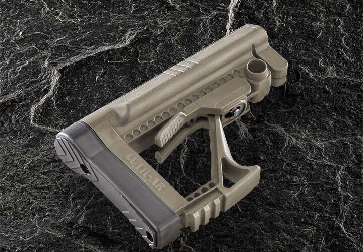 The Luth-AR MBA-5 Buttstock is the latest in the MBA Series. Designed as an affordable, lightweight, adjustable carbine buttstock with a paddle-style adjustment lever allowing rapid positioning. The wide flared cheek rest provides a comfortable cheek weld and the integrated Picatinny rail allows for attaching a mono-pod or other accessories and the Anti-rattle set screw allows for adjustment when used with a Mil-spec buffer tube.