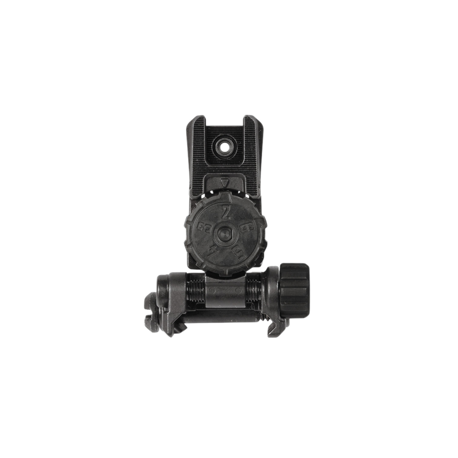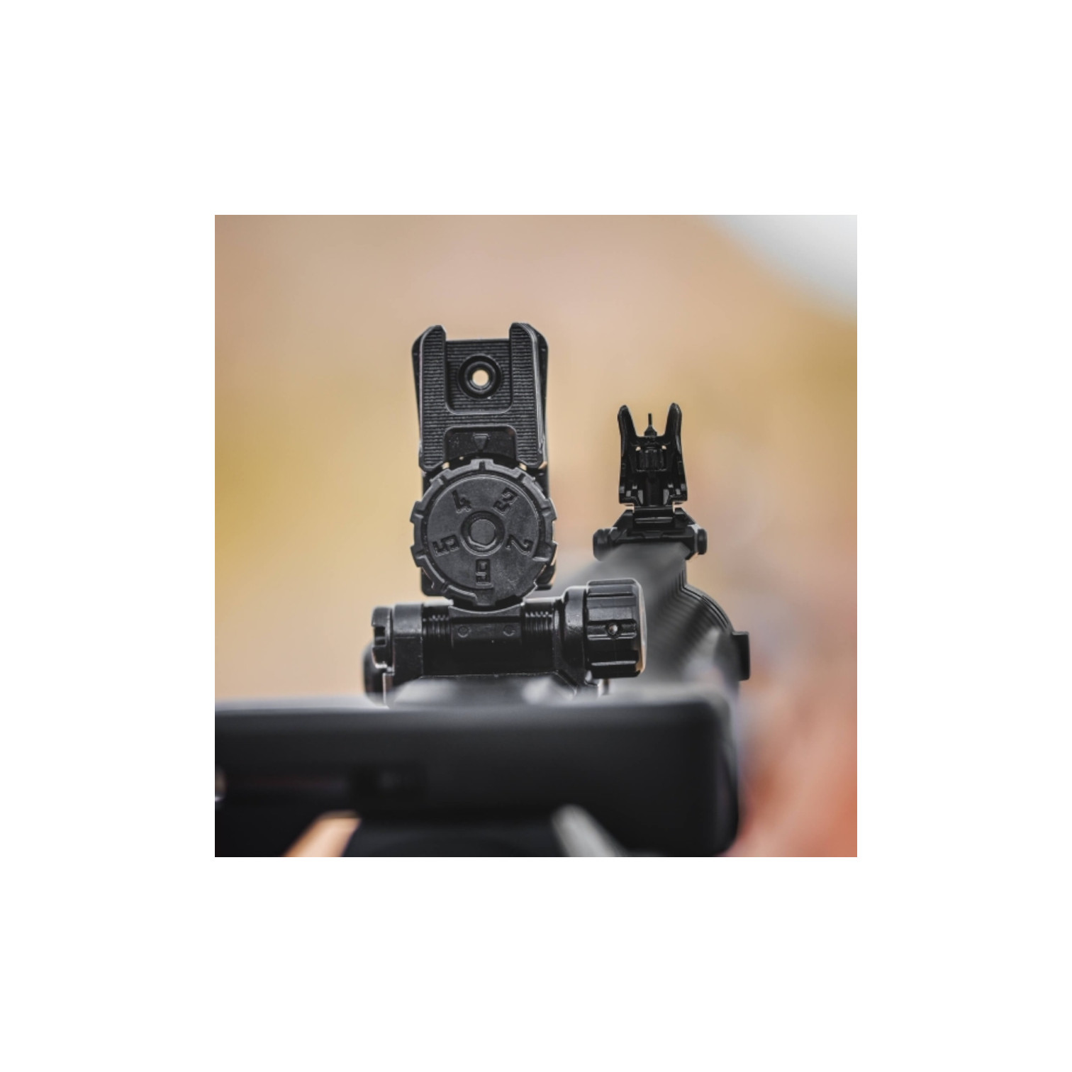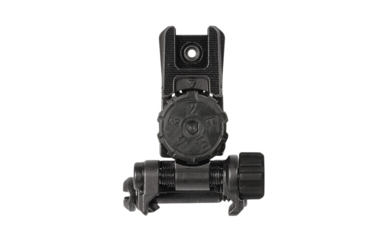 - WINDAGE ADJUSTABLE WITH LOW-PROFILE KNOB; No tools required. Standard AR sight height when deployed