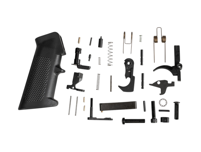 Finish your AR15 lower with this comprehensive Mil-Spec Lower Parts Kit. Includes every pin, spring, detent, and component needed for a fully functional lower—minus buffer tube assembly and stock. The phosphate-coated single-stage trigger delivers crisp, reliable 5.5–7 lb pull with proven mil-spec geometry. All parts are precision-machined for drop-in compatibility with any Mil-Spec AR15 lower receiver.