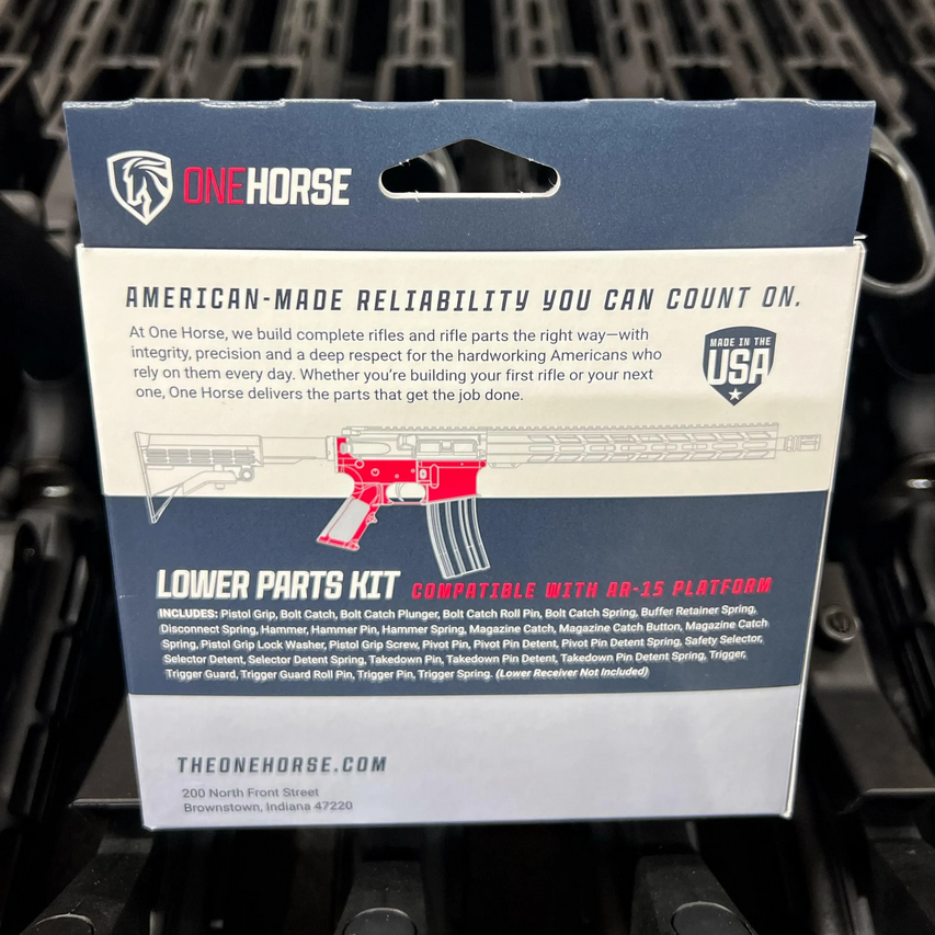 Every One Horse rifle and component is made in America with uncompromising standards. We use U.S.-sourced materials, U.S. manufacturing, and strict quality control at every step. No shortcuts, no imported surprises — just dependable parts built by people who take pride in American craftsmanship. When you run One Horse, you’re running gear you can trust every single day.