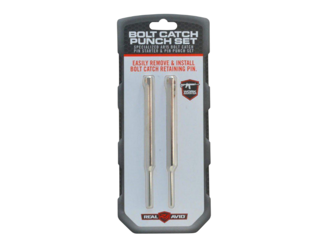 Two punches, one simple solution to the difficult to access bolt catch retaining pin. The orientation of the pin, close proximity to the lower receiver, distance required to safely punch a pin and the difficulty in getting the pin started makes it a real pain with standard punches. Our simple solution is specially designed to fit flush against the receiver without damaging it and is long enough to reach the pin. It features a roll pin punch for removing pins and a magnetized roll pin starter punch that eliminates the need for a third hand. Smart, simple, frustration free.