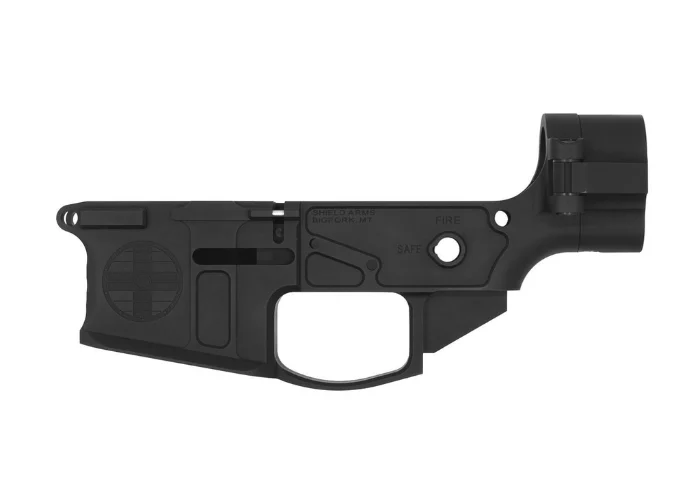 Shield Arms’ patented folding lower receiver with integrated folding mechanism – NO ADAPTER required. Unlike traditional folding adapters, the folding mechanism is built directly into the billet aluminum receiver for a lighter, stronger, more reliable design. Perfect for building custom folding AR-15 rifles and pistols.