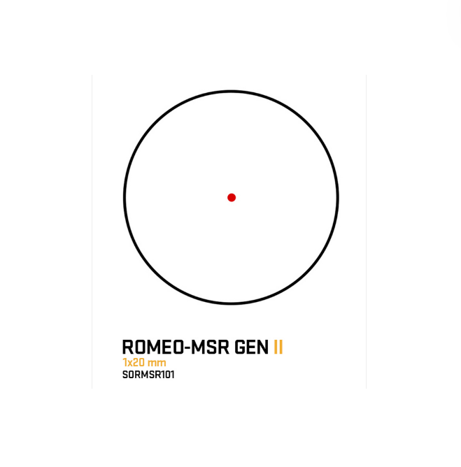 Available in either a green or red reticle, the ROMEO-MSR GEN II maintains adaptability with an analog rotary illumination dial to manipulate 12 individual brightness settings, including two dedicated night vision options. Featuring a redesigned see-through riser mount, the ROMEO-MSR GEN II allows for a convenient co-witness while still maintaining ultimate durability.