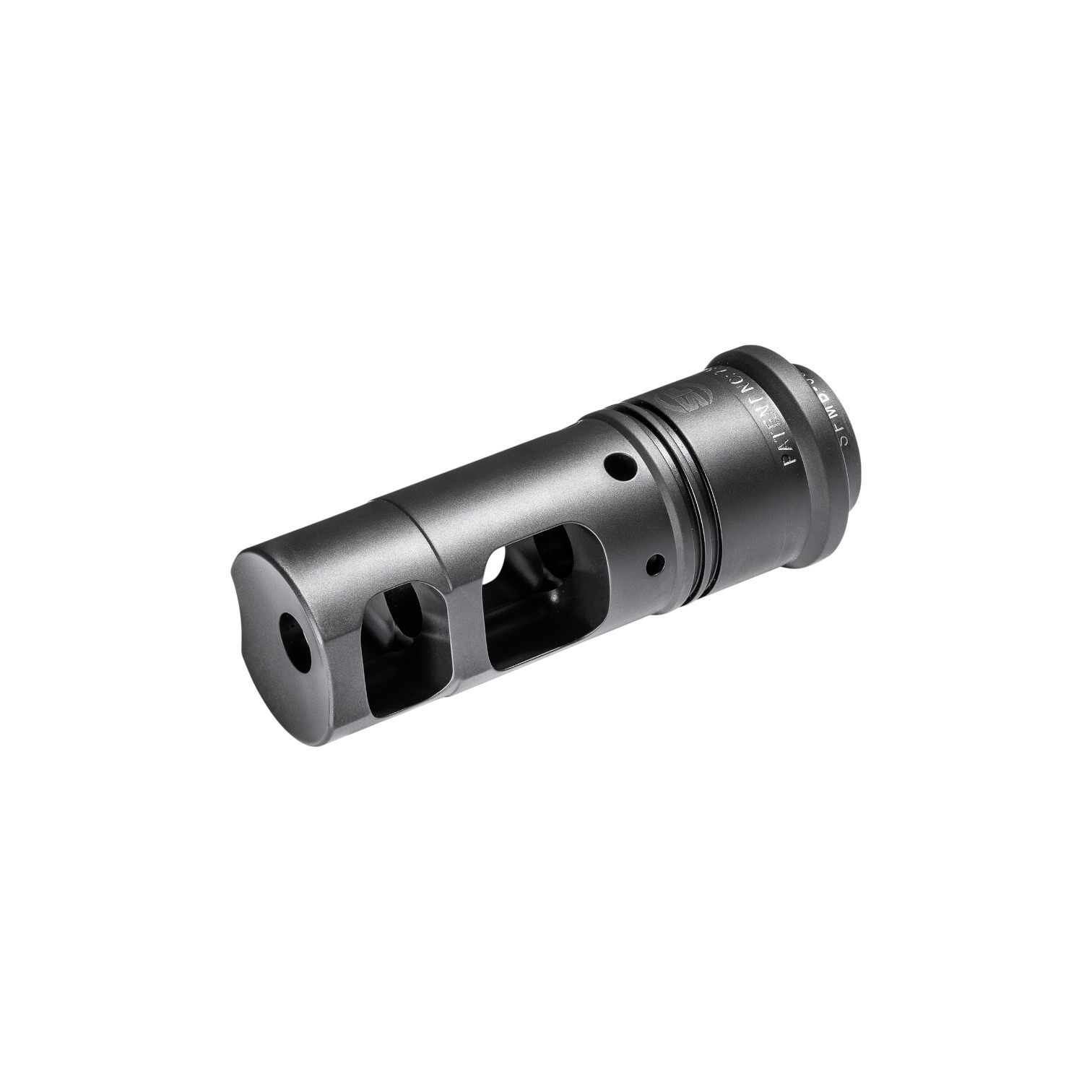 Reign Over Recoil. SureFire SFMB muzzle brake suppressor adapters greatly reduce both recoil impulse and muzzle rise so that your weapon tracks straight back, keeping you on target for faster shot-to-shot recovery. Our proprietary Impulse Diffusion design minimizes side blast and rear-directed concussion effects. Precision machined from U.S. mill-certified heat-treated stainless steel bar stock and DLC-coated for extreme durability, they are available for a variety of weapon calibers and muzzle thread specs, and every SFMB serves as a rock-solid mounting adapter for SureFire’s combat-proven SOCOM Series Fast-Attach® suppressors. The SFMB design incorporates multiple bearing surfaces to ensure superior suppressor alignment. Blind pilot holes on 5.56 and 7.62 models enable fine-tuning of recoil characteristics for individual shooting styles. All that’s required is a basic hand drill and appropriate drill bits.