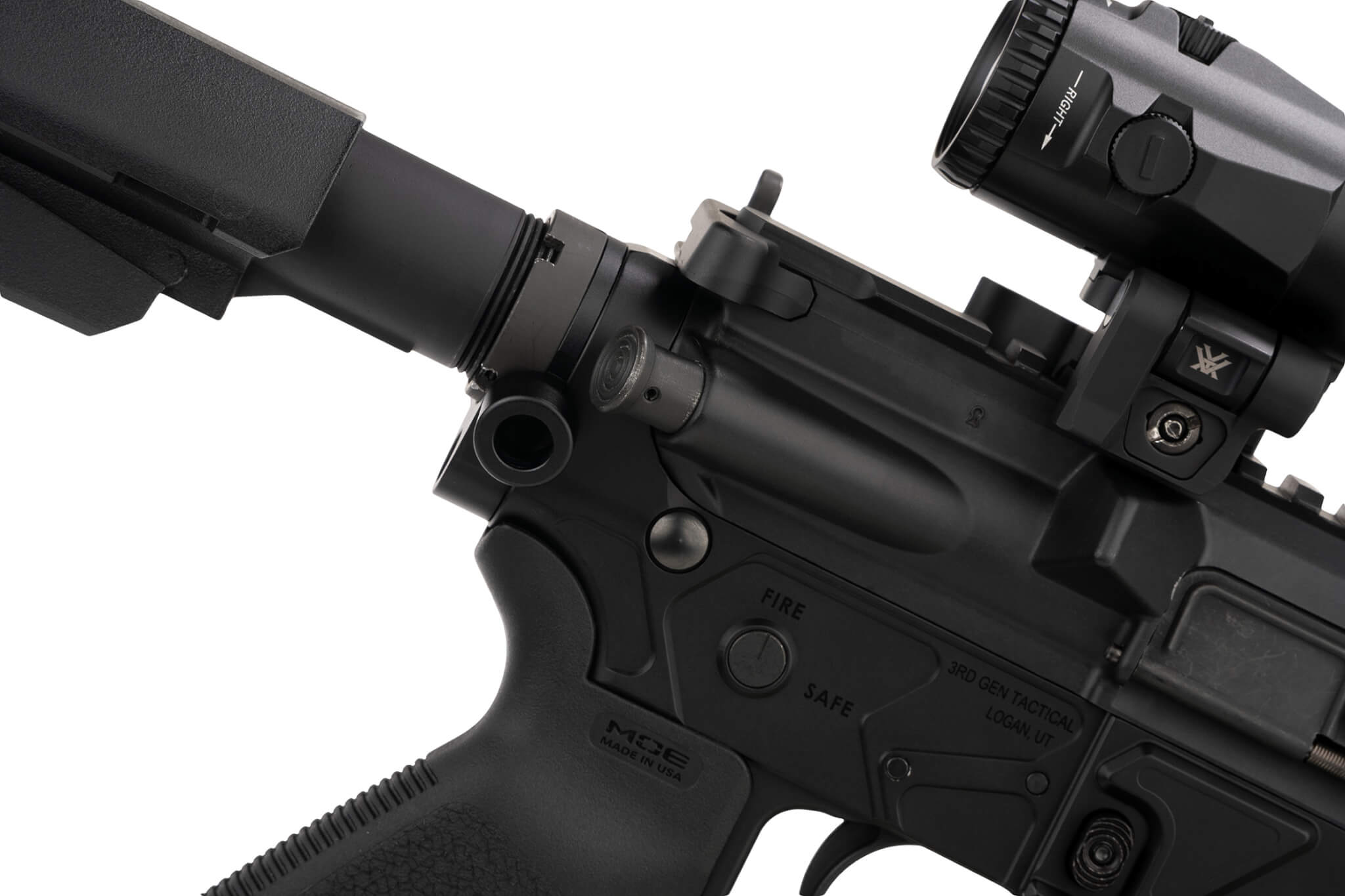 - Compatible with standard AR-15 receivers and castle nut assemblies.