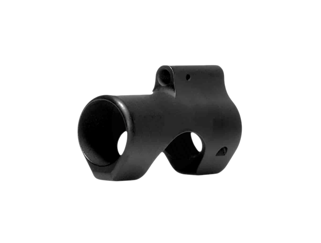 - Low-profile gas block that is made to cover area under fixed sight gas block and hides taper pin holes.
