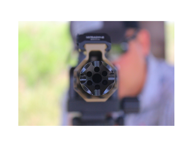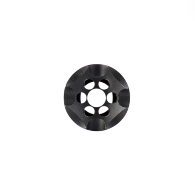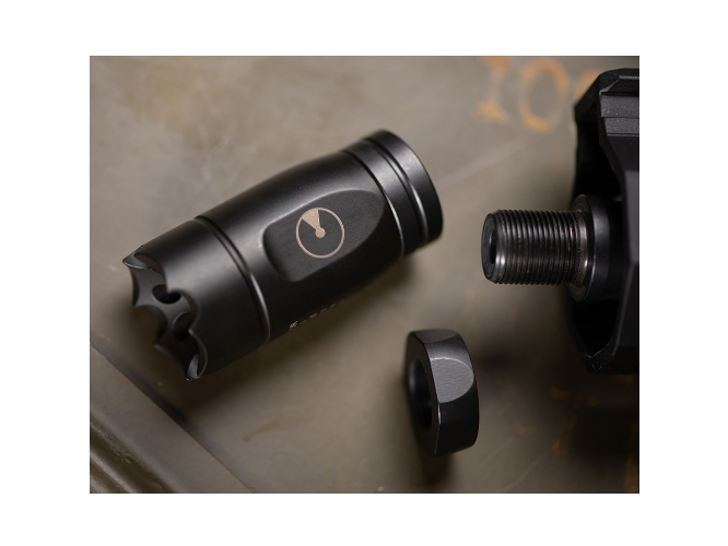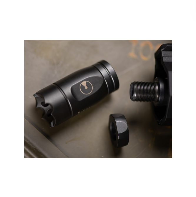 ATHENA is Ultradyne’s linear compensator. Muzzle rise has been optimized, with gas vented at an angle then forward. This sends a lower percent of sound and gasses back towards the shooter, optimizing sonic performance over recoil. Athena gives a cleaner appearance for a sleek look compared to traditional brakes and is the most cost-effective way to upgrade a rifle to the Dynamount Sighting System. Like all Ultradyne muzzle devices, a timing nut is included for easy installation ( Crush washer for the .350 caliber).