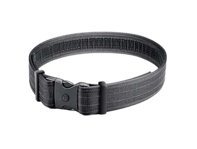 Designed and constructed of a double layer of though 2” nylon that minimizes bulk and maximizes comfort with its padded edges. The entire belt is stiffened with polymer for support. All belt finishes share the same construction, based on sturdy nylon webbing. Leather-look plain and basket-weave finishes are added to all mirage models. Rigid enough to support duty gear, yet flexible for comfort. All belts have hook & loop lining to mate with ultra and loop back inner duty belts Edges of web belts are finished with smooth nylon to prevent snagging and cutting into your side; MIRAGE models have rolled edges.