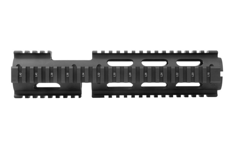 - Picatinny Rails with 19 Top Slots, 23 Bottom Slots, 25 Left/Right Slots