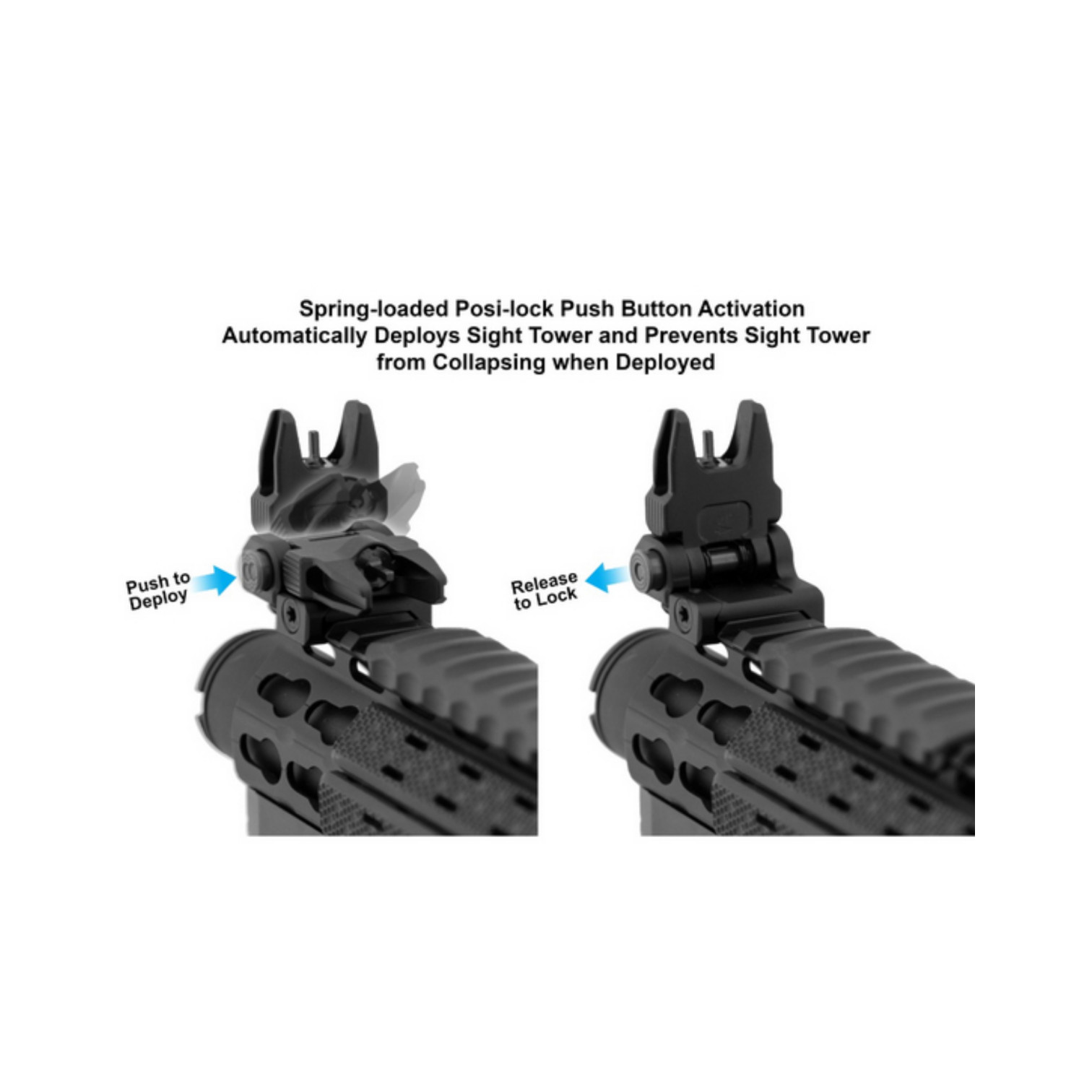 UTG ACCU-SYNC Spring-loaded AR15 Flip-up Front Sight Same Plane, Black UTG ACCU-SYNC Spring-loaded AR15 Flip-up Rear Sight, Black