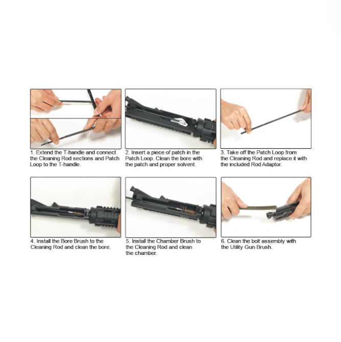 • Complete Model 15/16 Cleaning Kit with 5 Piece Rods(Includes Loop), Adaptor, Bronze Bore Brush, Chamber Brush, Dual-Ended Nylon Brush, Oil Bottle and Cleaning Cloth