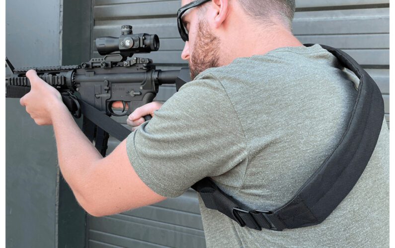 - Adjustable in Length from 42″-58″, Matte Black 1.2″ Width Polyester Webbing with Portion of Sling Padded for Comfort