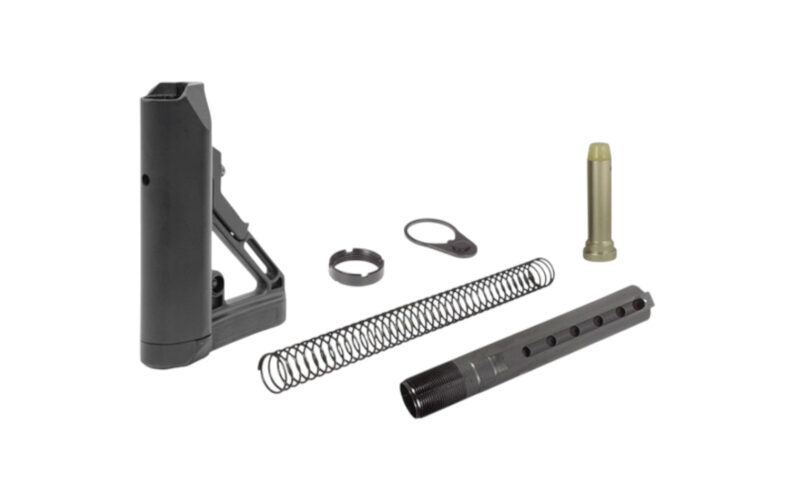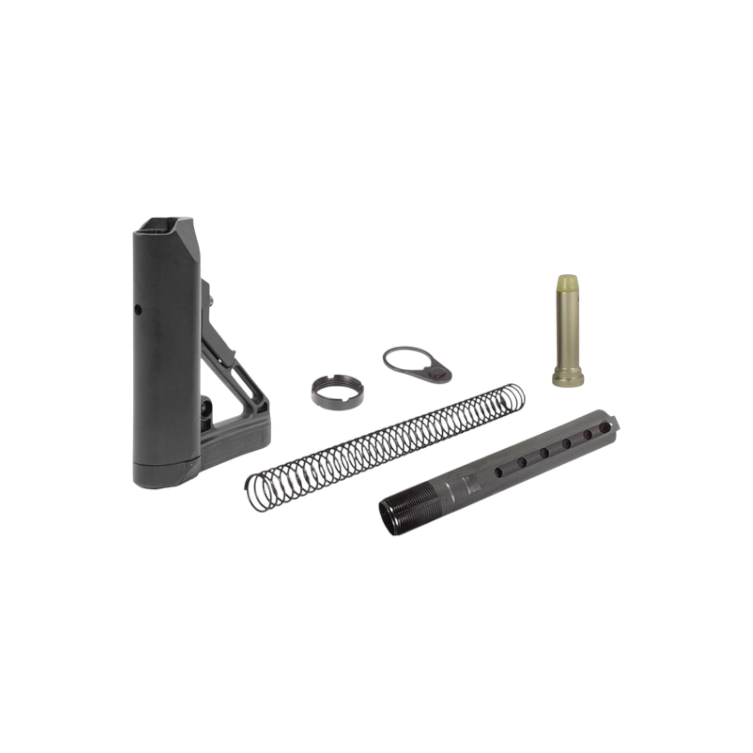 - Includes Polymer Stock, Mil-spec 6 Position Extension Tube, Buffer, Buffer Spring, Tear-drop Ring and Castle Nut