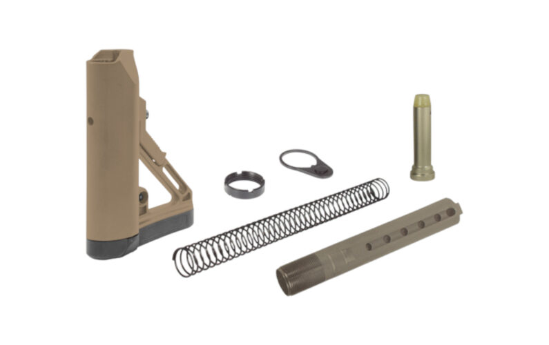 - Includes Polymer Stock, Mil-spec 6 Position Extension Tube, Buffer, Buffer Spring, Tear-drop Ring and Castle Nut