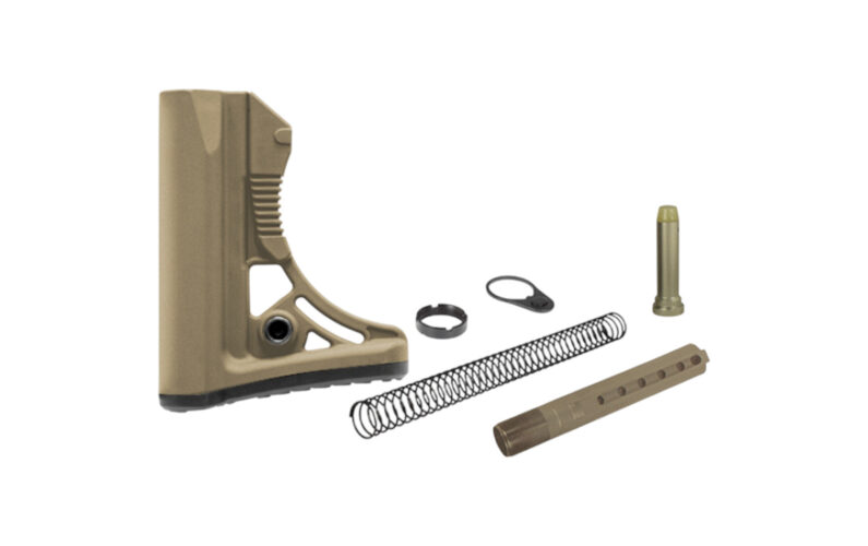 - Includes Polymer Stock, Mil-spec 6 Position Extension Tube, Buffer, Buffer Spring, Tear-drop Ring and Castle Nut