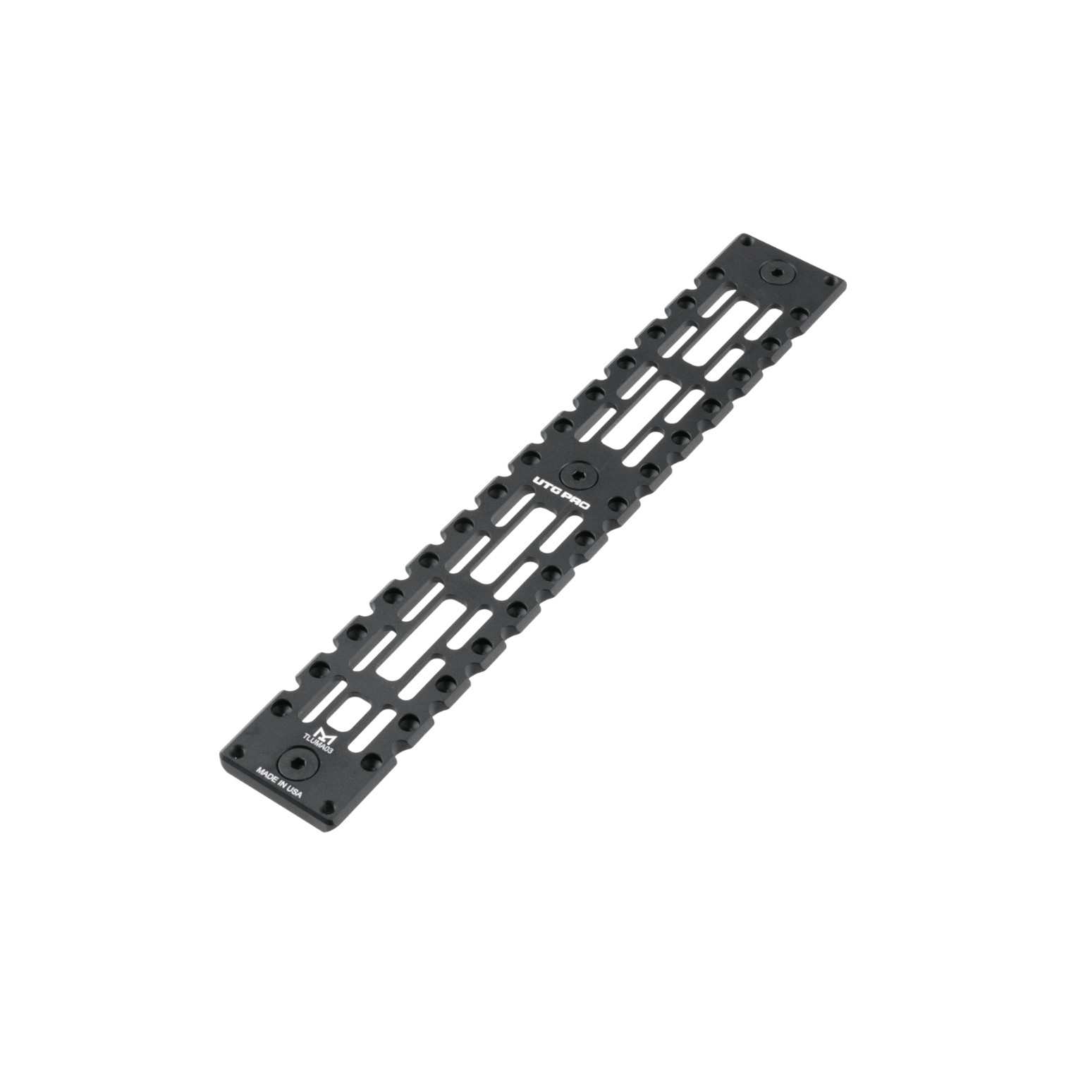 - M-LOK® Interface Spaced for Installation in Complete Slots or in Between Adjacent Slots