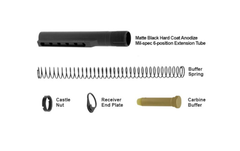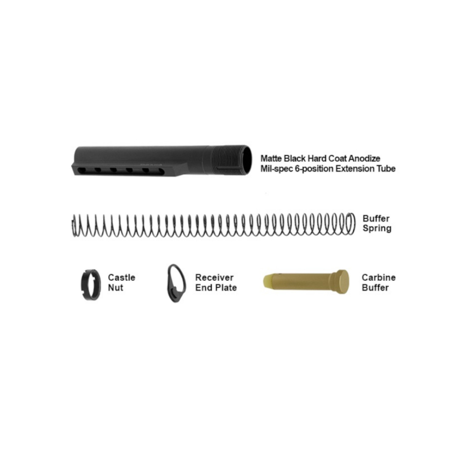 - Includes Carbine Buffer, Buffer Spring, Receiver End Plate, and Castle Nut