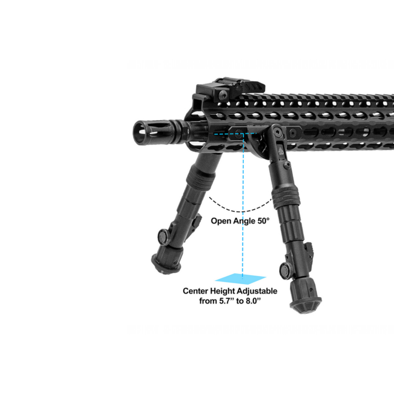 - Center Height Adjustable From 5.7″ to 8.0″, Physical Length: 7.4″-10.1″, Requires the Length of 5 Keymod Slots Per Leg